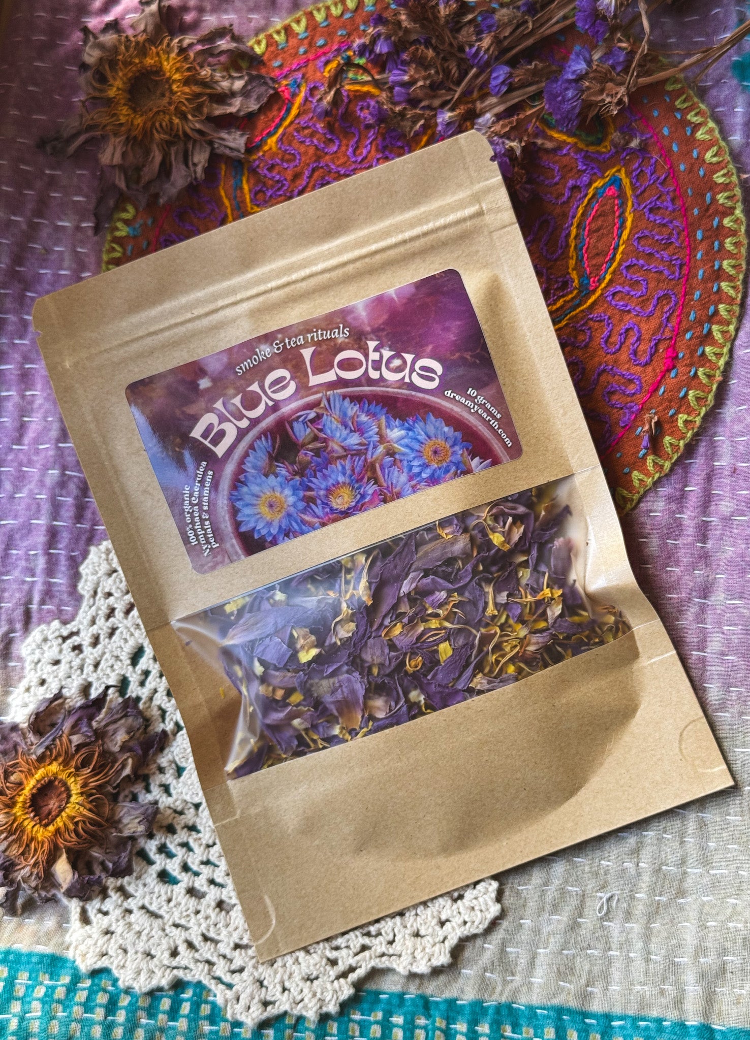 On an energetic level, Blue Lotus works with the third eye and crown chakras, opening pathways for deeper spiritual awareness. It is associated with divine wisdom, dream magic, and the ability to see beyond the veil of ordinary reality. Whether used in tea or as a mystical smoke, it carries an energy of tranquility and expansion, inviting us to surrender to the mysteries of the universe.