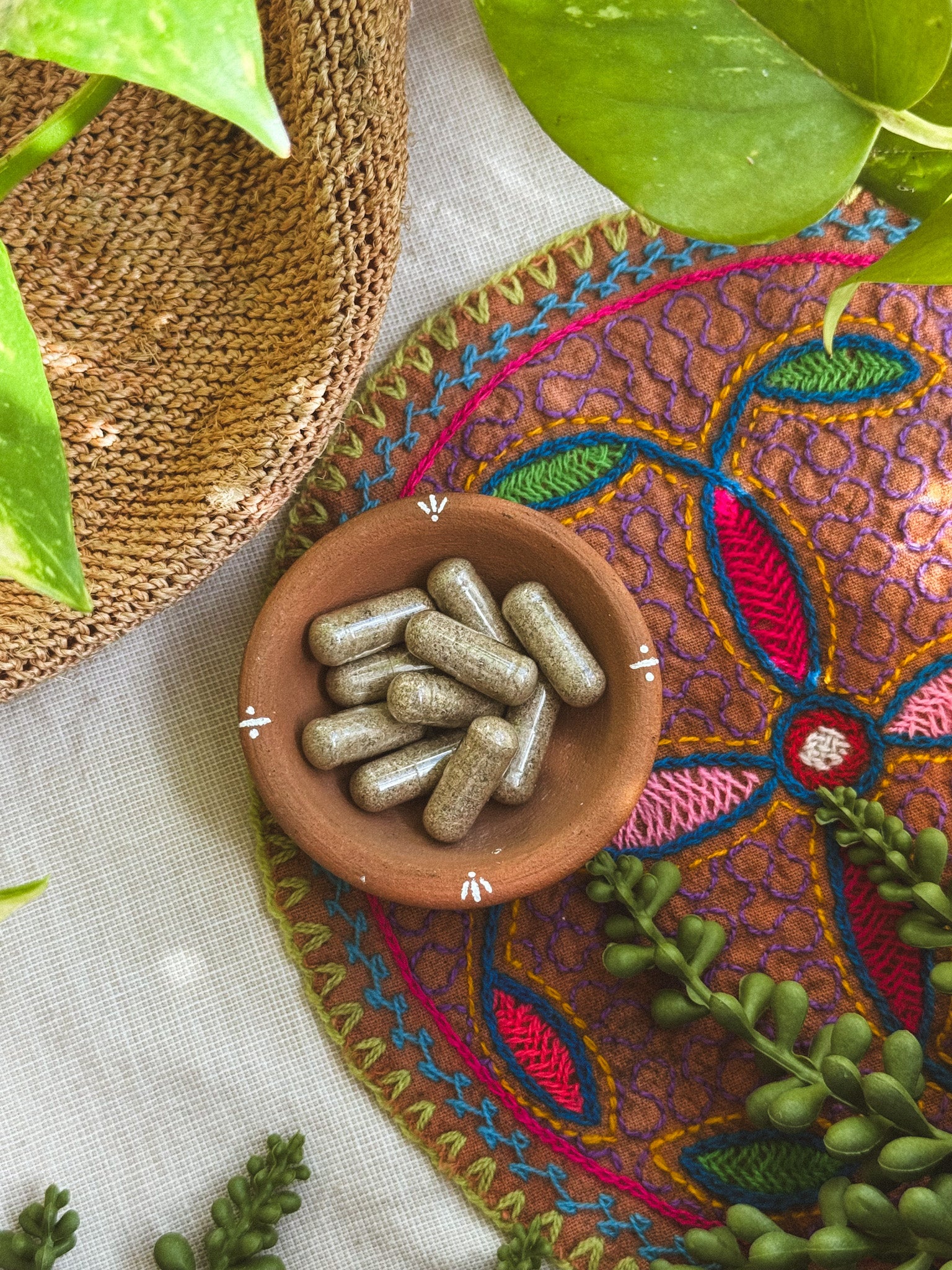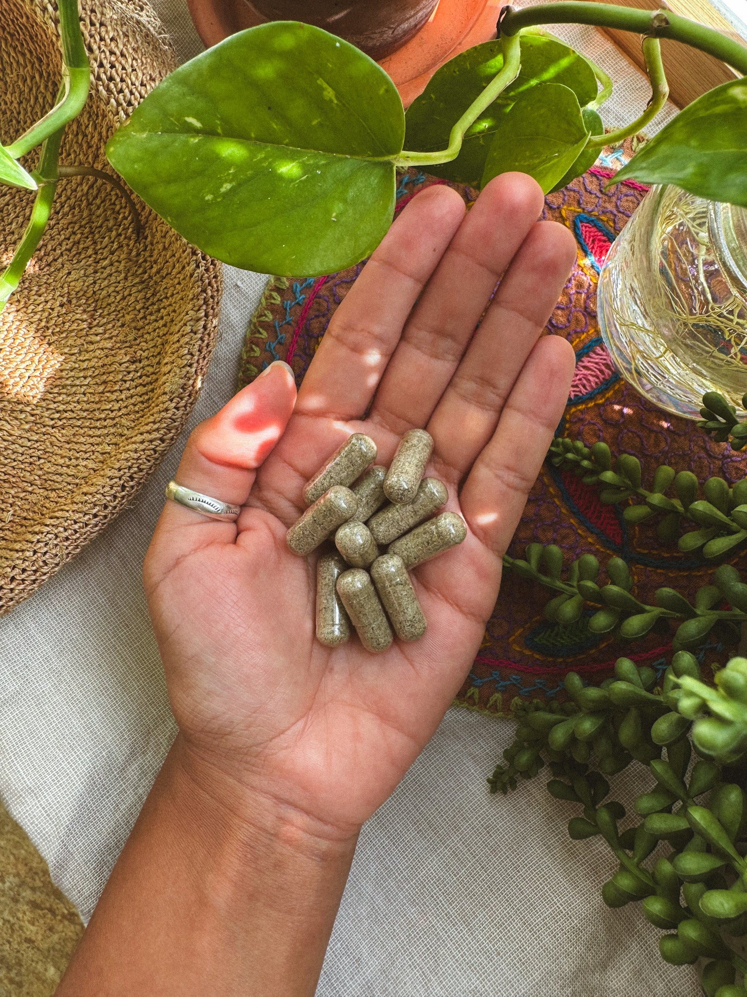 ☽ .2 capsules of Earth Teachers (pack of 10/ 1 month supply): This is a lovely dose to be active, in nature, and embrace playfulness or to sit with yourself in reflection and surrender to what wants to rise up and illuminated upon. Everyone is unique and this sacred medicine will work with you in many ways. Be open + trust.