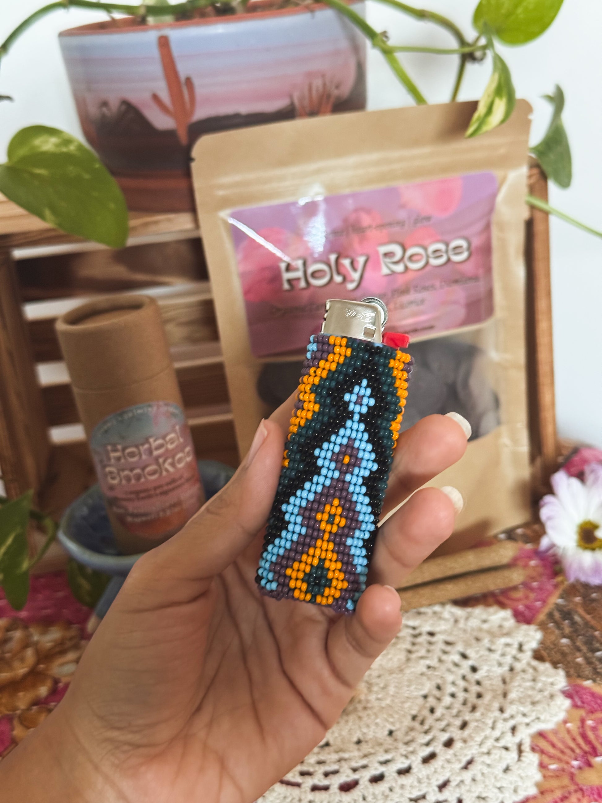 ⪼ 1 Beaded Lighter Case: these one-of-a-kind lighter cases are beaded by hand by indigenous women in Mexico. Made with precious Ornela glass beads and designs inspired by nature, these art pieces are meant to adorn your altar spaces. Fits a standard BIC lighter (not included).